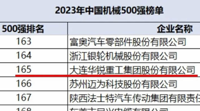 大连重工位列中国机械500强企业第165位